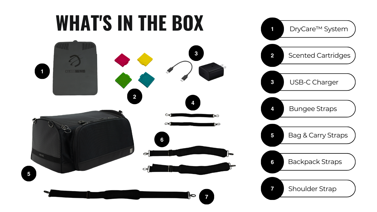 NOVO includes built-in fast chargers and a 10,000 mAh battery bank. Within the app, you can view NOVO’s battery life and cartridge/filter life. You can use the USB chargers from the exterior side pocket. The battery life varies on how frequently it’s used; on average, you can run one (1) cleaning cycle per day for one (1) week before needing to charge NOVO again.